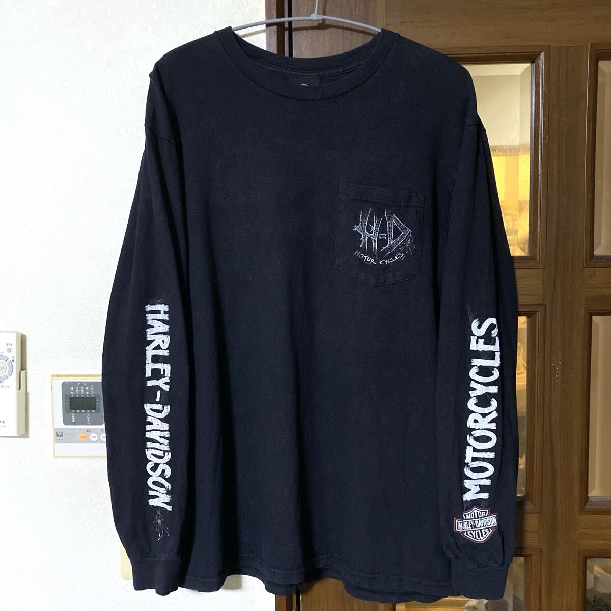 - Harley-Davidson ロンT スパイダー Tシャツ L ビンテージ 長袖Tシャツ ブラック 古着 ポケットTシャツ ハーレーダビッドソン