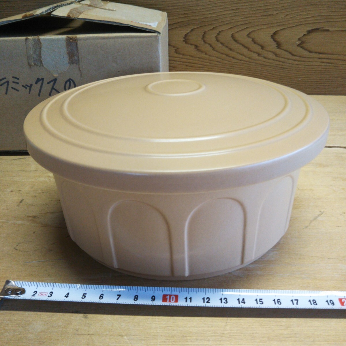 > 25080601 ニューセラミックおひつ ベージュ 東彼セラミックス 保存容器 おひつ セラミック 容器後と電子レンジ可能 未使用品