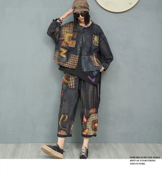 > gl 2508 チュニック&ズボン2点セット ジャケット 羽織物 トップス 綿&麻 洋服ミックス アンティーク風 ロマンファッション 貼り付け
