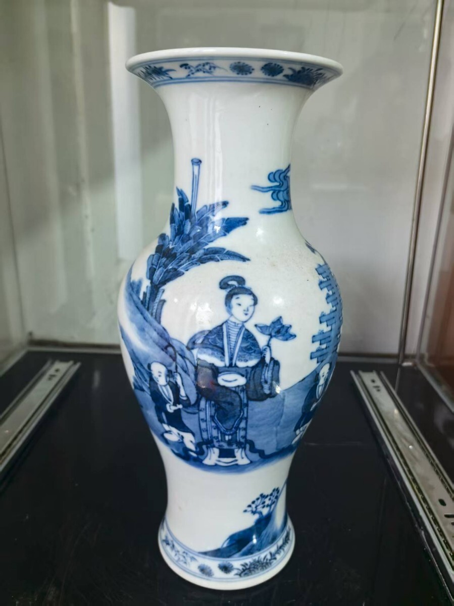 - 【萬藏】中国 清代 中国美術 青花 花瓶 花入 骨董品 置物 花入れ 時代物 古美術 花器 vd18