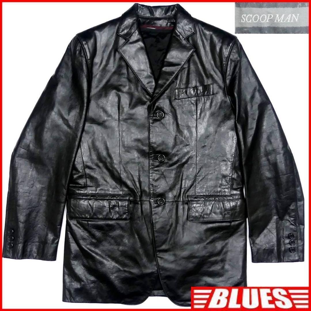 > 即決★SCOOP MAN★メンズM レザーテーラードジャケット スクープマン 黒 キルティング 中綿 ライナー付 本革 スーツ 本皮 ブレザー
