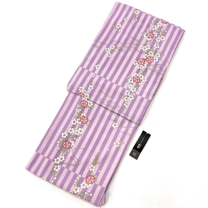 - R・K お仕立て上がり 着物 洗える着物 小紋 袷 ブランド 花柄 ストライプ パープル RYOKO KIKUCHI キクチリョウコ