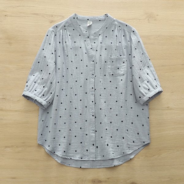 > c 2508 ダブルガーゼ フリーサイズ チュニック トップス ナチュラル 綿100% 通気性肌触り抜群 サラサラ ゆったり ドット柄 半袖4