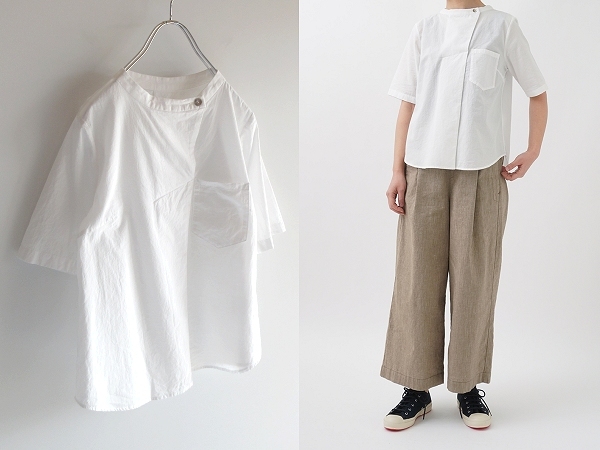 - よそおい掲載 今期 Pallas Palace パラスパレス 2025SS コットン ローン 前タックシャツ プルオーバー ブラウス 2 ホワイト ネコポス対応