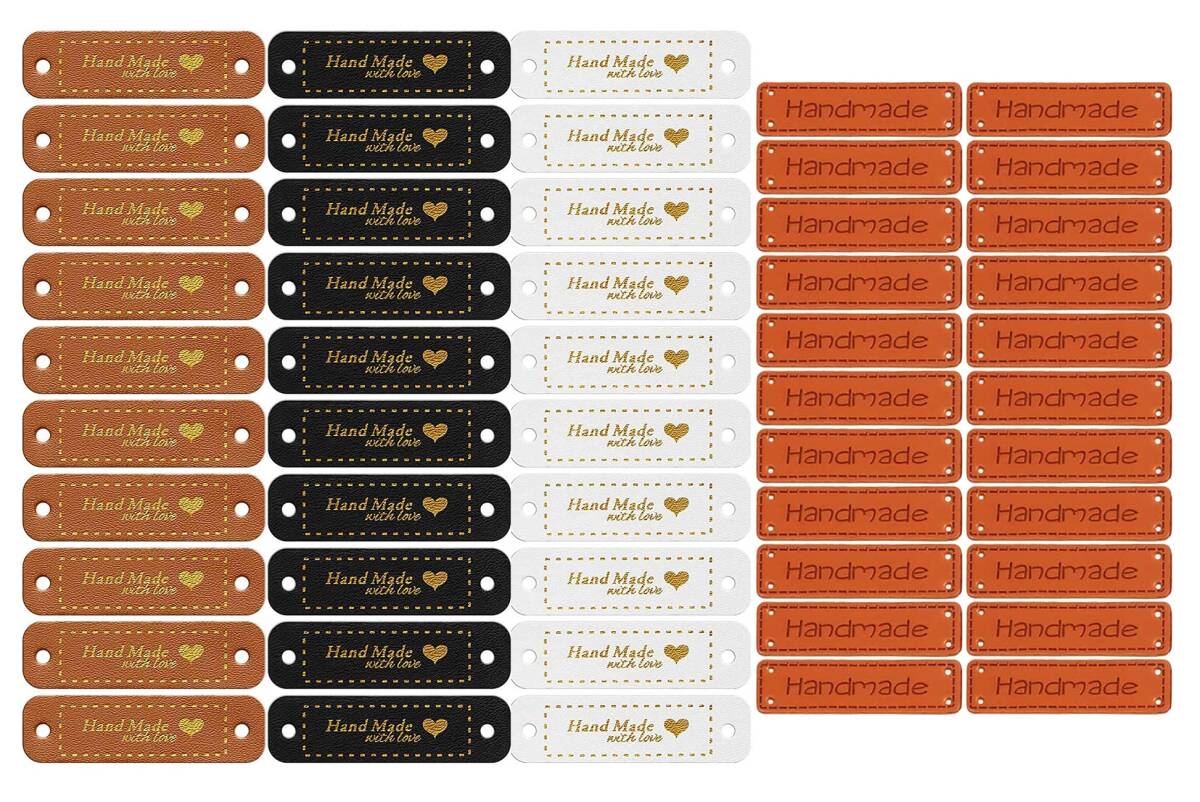 - 手作りのPUレザータグ、50個服のタグに愛を込めて手作り、DIYクラフト用の穴のある装飾ニットアクセサリーかぎ針編みの編み物帽子人