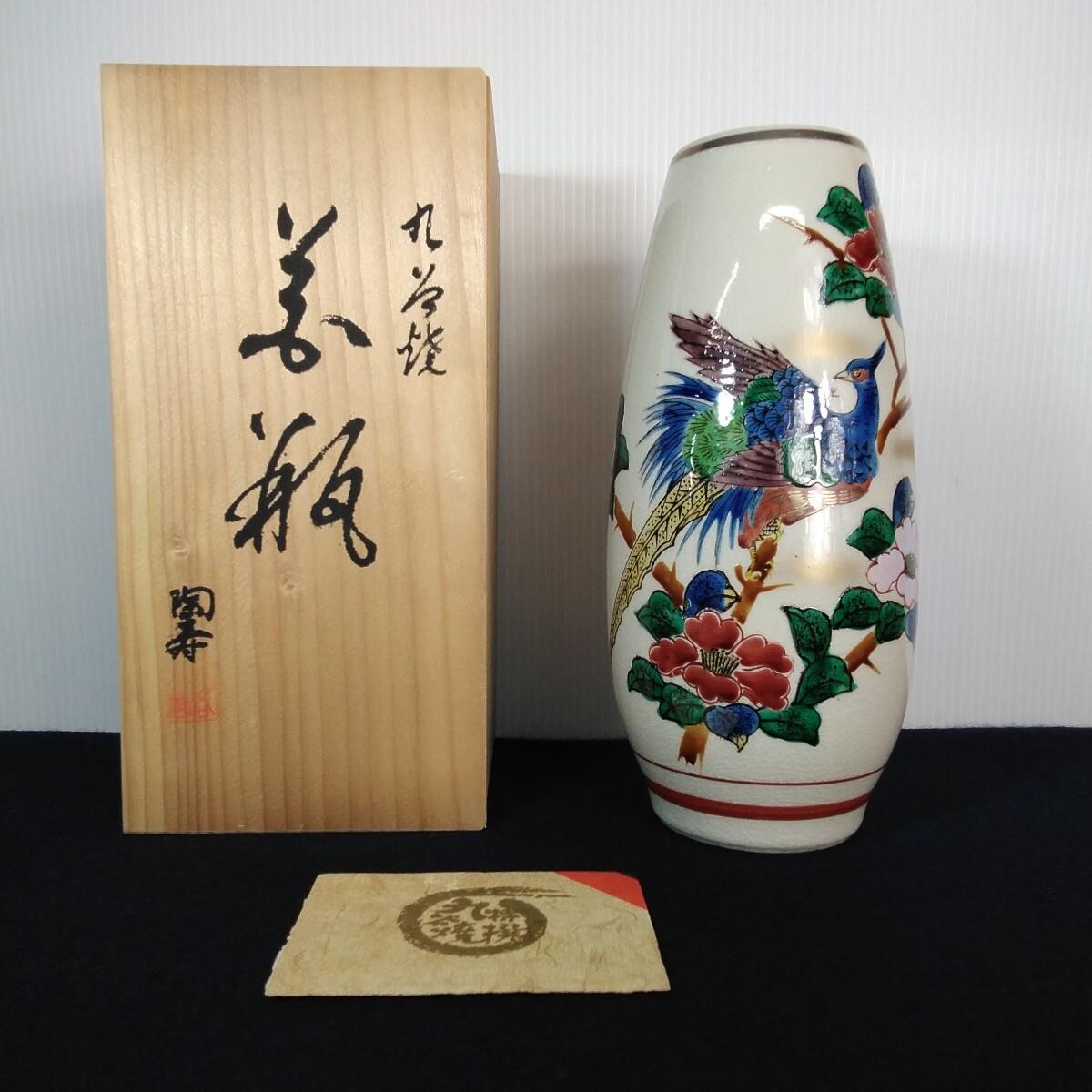 - z583 九谷焼 花瓶 雉山茶花 保管品