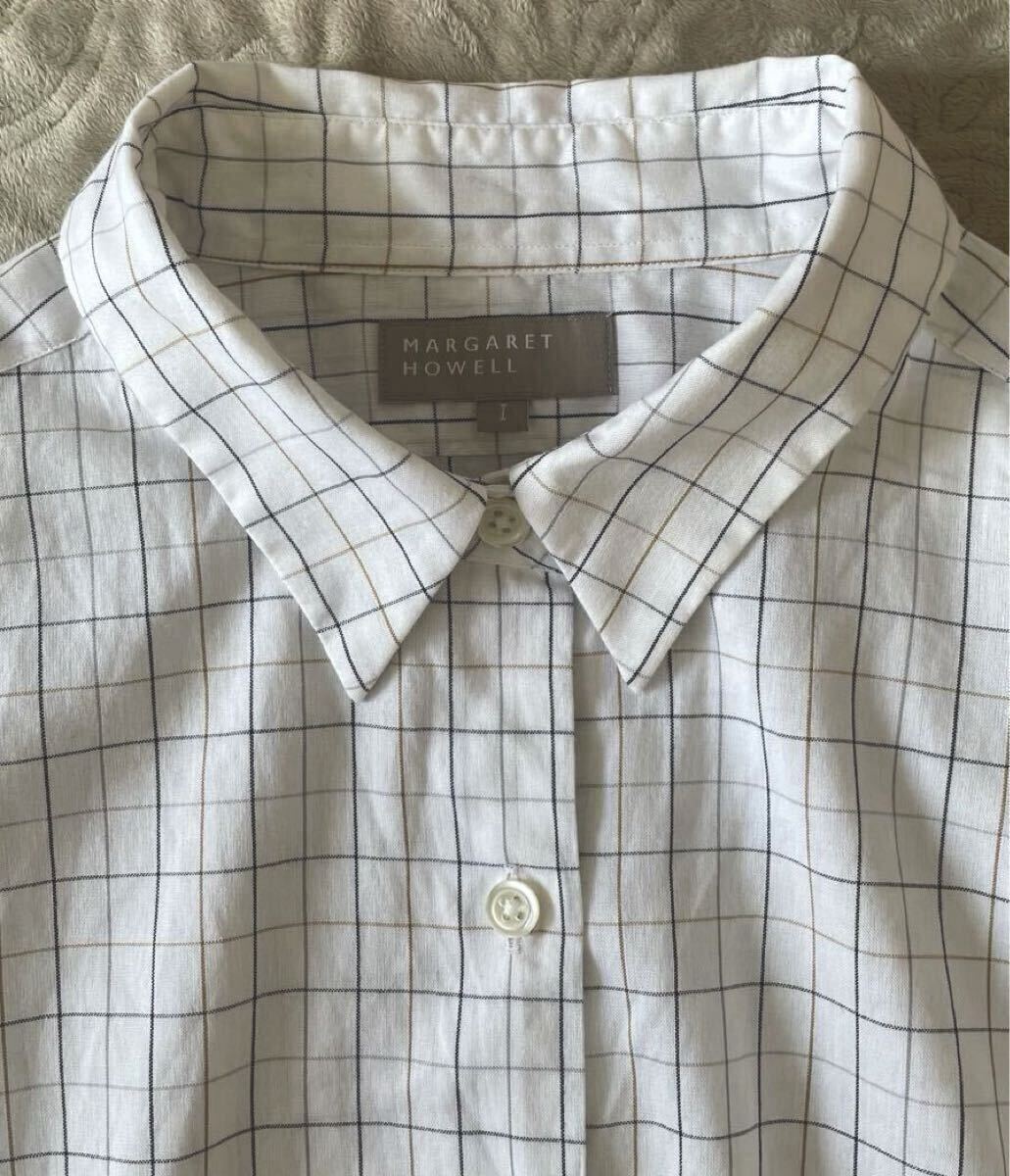 - マーガレットハウエル チェック シャツ コットン100% ブラウス 半袖 肩落ち オーバーサイズ 綿 白 茶色 グレー 黒 Ⅰ 日本製