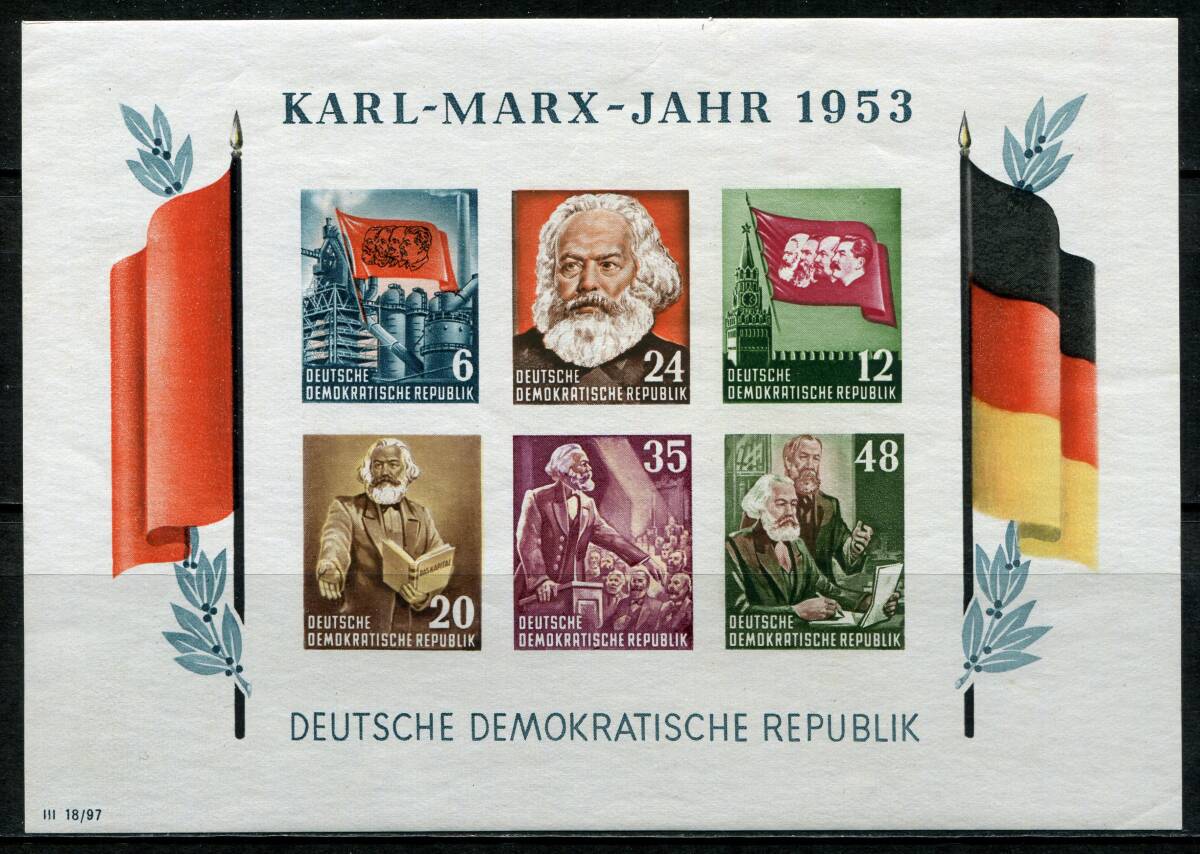 - 東ドイツ 1953年 人物 カール・マルクス ① 無目打 小型シート 未使用 z8482