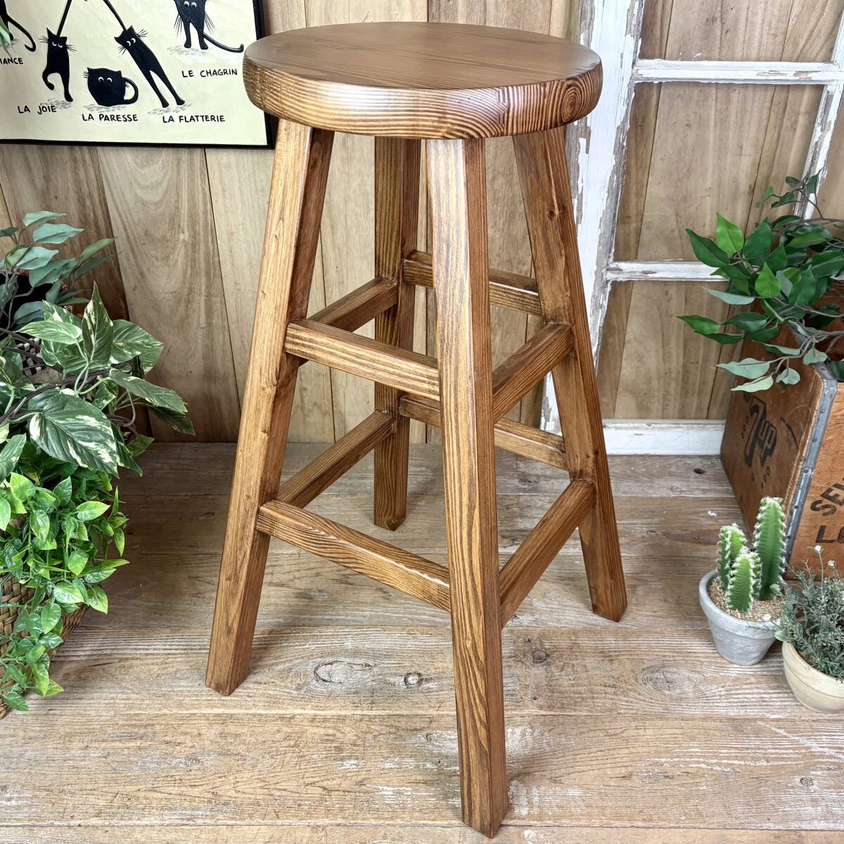 - 送料無料、北欧カントリー調パイン材丸カウンターチェアハイスツール、天然無垢松材椅子、木製チェア、置き台、花台イス、ナチュラルウッド