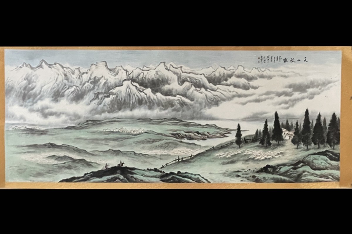 - 中国書画「関山月 天山放牧図 鏡片」肉筆紙本 掛け軸 墨寶妙品 書画横軸 巻き物 古美術 旧蔵出