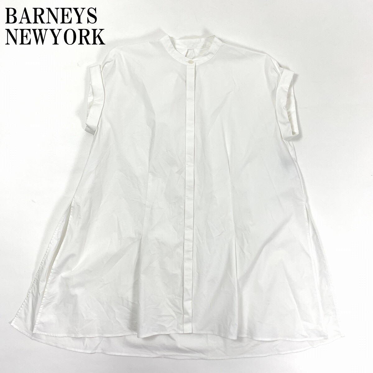 - BARNEYS NEWYORK バーニーズニューヨーク コットン ノースリーブ ロングボタンシャツ ブラウス チュニック ホワイト F YC964