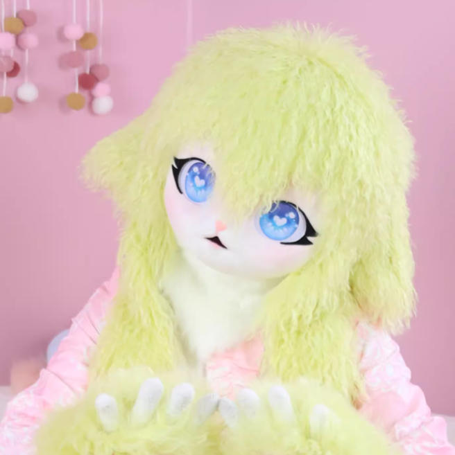 - ファースーツ 着ぐるみセット 羊 黄色 可愛い ケモノ ファースーツ 全頭ヘッド ぬいぐるみ コスプレ コスチューム kigurumi