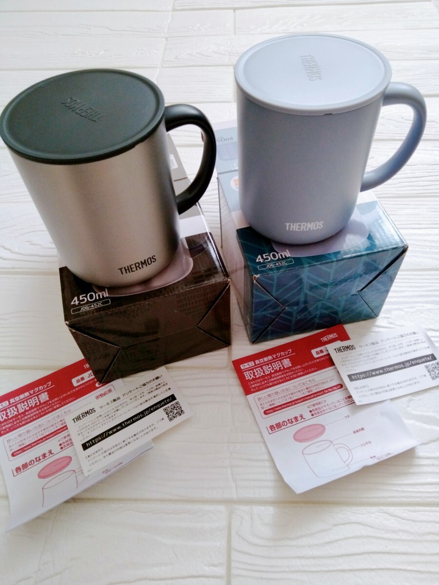 - 未使用*サーモス THERMOS*真空断熱マグカップ 2個セット*JDG-452C*ステンレスマット&アッシュブルー*450ml*蓋付き