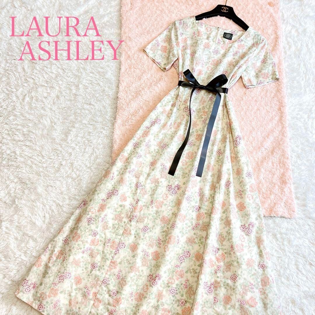 > 極美品 LAURA ASHLEY ローラアシュレイ ロングワンピース マキシ丈 Aライン フレア 花柄 総柄 13号 XL