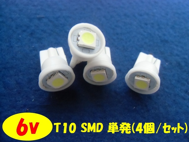 - LED 6v T10ウエッジ球 SMD単発 【ホワイト×4個セット】