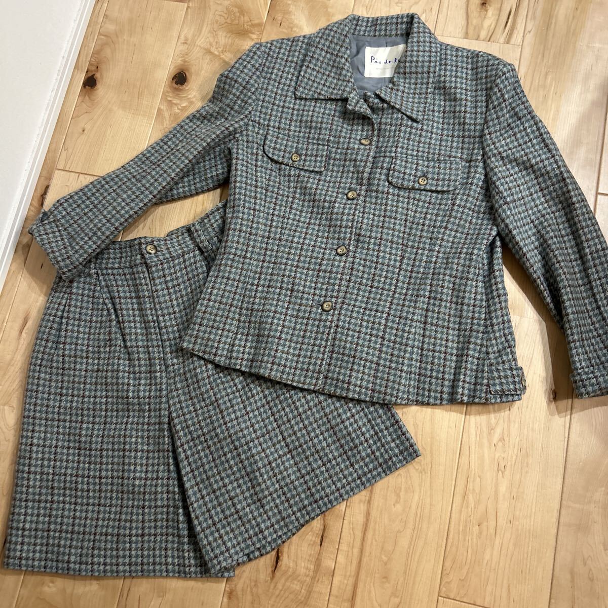 - ケティ パオデロ セットアップ ヴィンテージ スーツ キュロット グリーンブルーチェック サイズM パンツ スカートスーツ