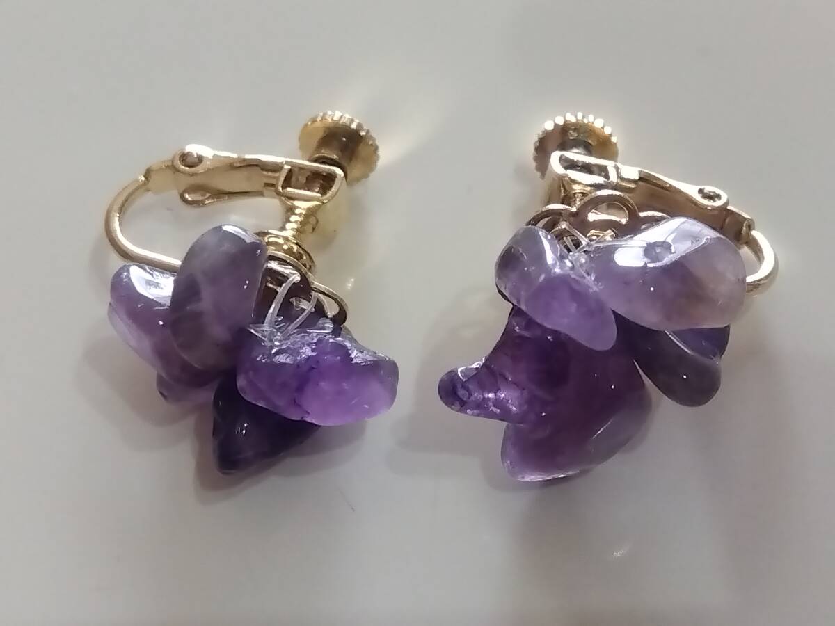 - 新品・未使用品 即決\800 天然石 アメジスト イヤリング
