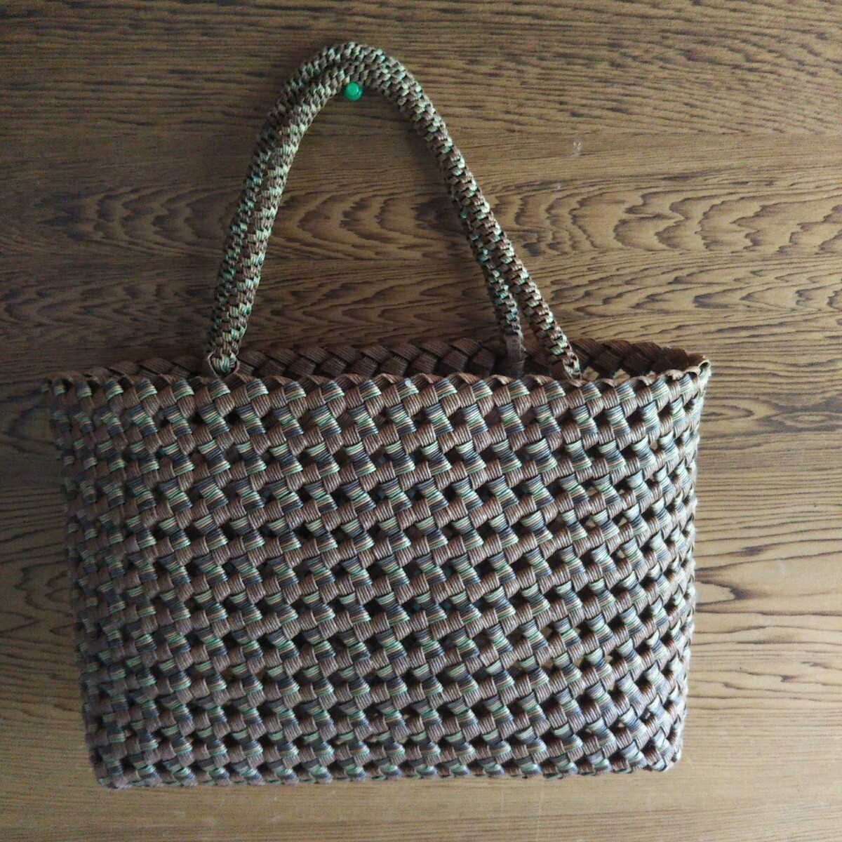 - 25080909 昭和レトロ バスケット籐 バッグ かごバッグ アースカラー