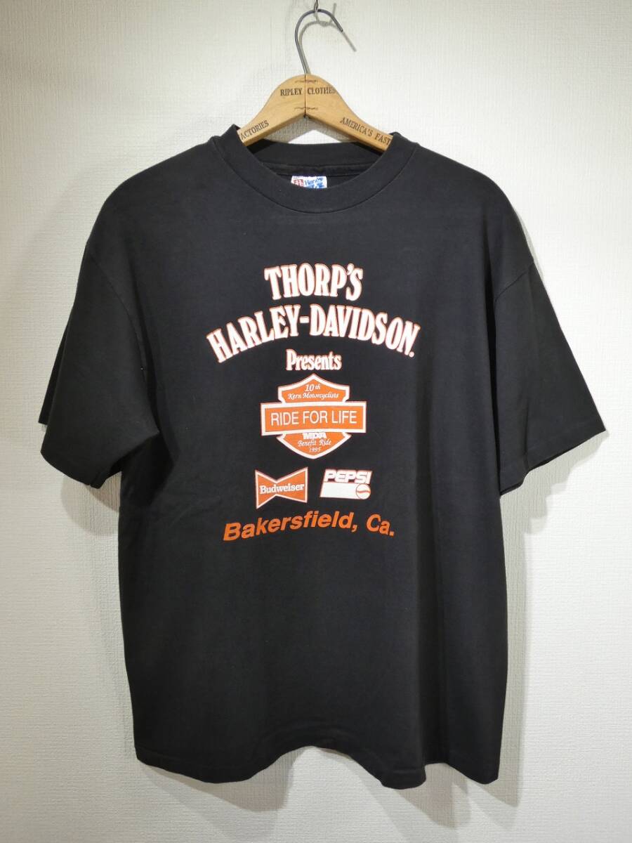 - レア USA製 90s ビンテージ Hanes HARLEY DAVIDSON ハーレー ディーラー MDA RIDE FOR LIFE イベント プリント Tシャツ L BUDWEIZER PEPSI