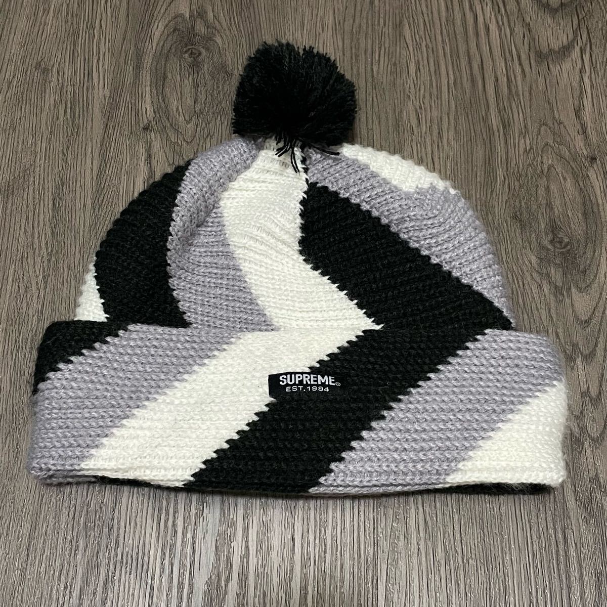 - 美品 Supreme ボンボン付き ビーニー ニットキャップ BLACK WHITE GREY ストライプ ニット帽 シュプリーム ポンポン付き Beanie 柄物 総柄