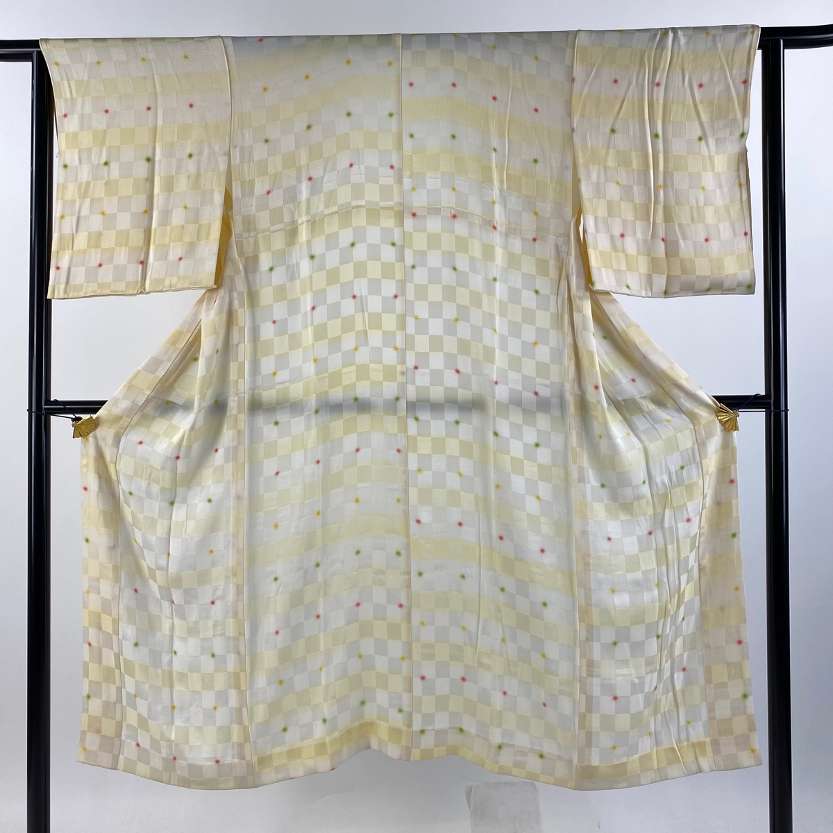 - 長襦袢 身丈134cm 裄丈63cm S 市松 幾何学模様 薄黄 正絹 秀品 【中古】