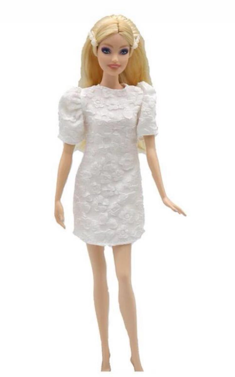 - 真っ白な花柄ワンピースリカちゃん・バービーちゃん・ブライス・お人形さん用