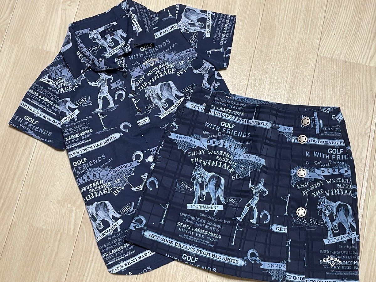 > ■ 美品 Callaway キャロウェイ LL ポロシャツ L スカート 上下セット ネイビー ゴルフウェア ウエスタン 総柄 セットアップ ★