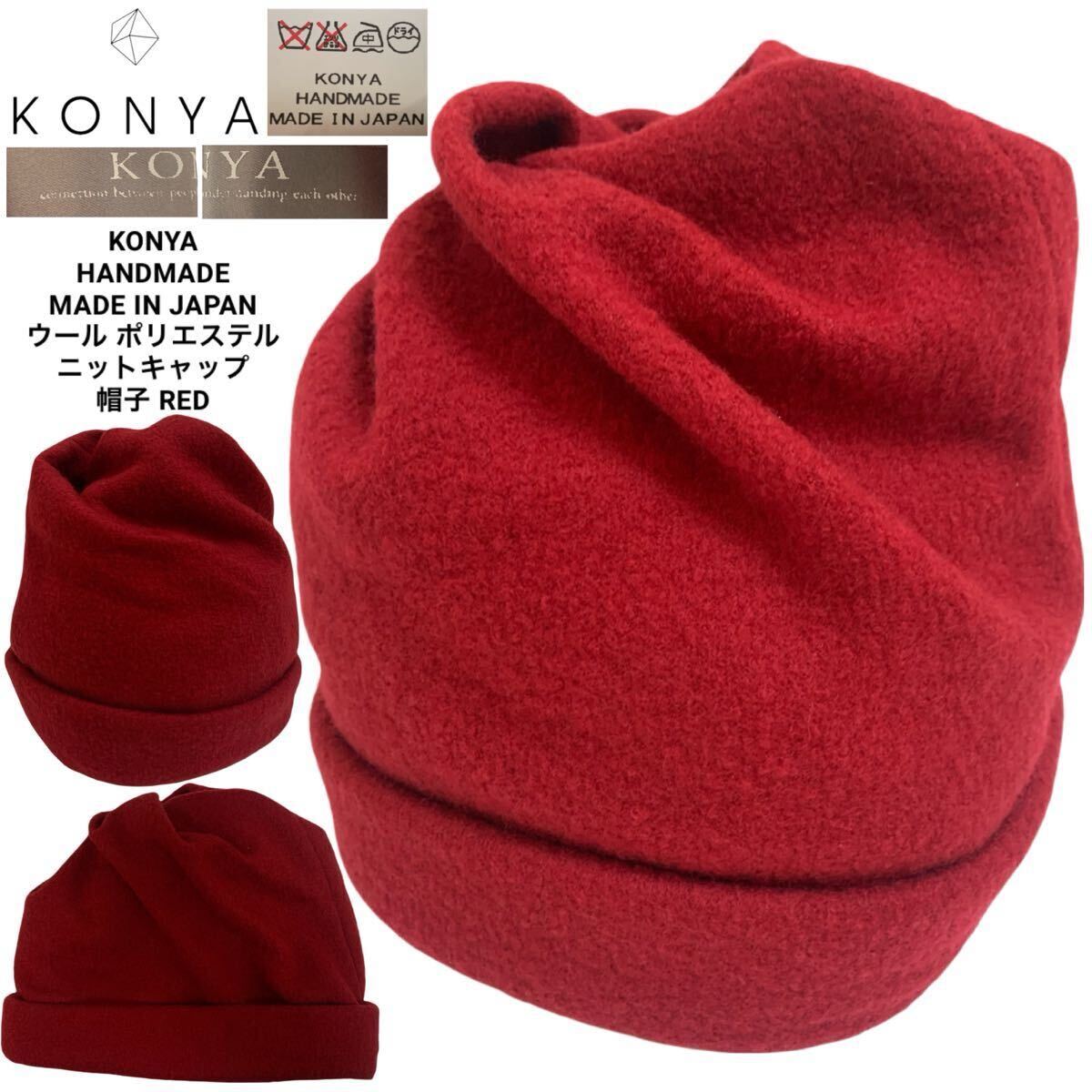 > KONYA コンヤ 未使用品 HANDMADE MADE IN JAPAN 日本製 ウール ポリエステル ニットキャップ ニット帽 キャップ 帽子 レッド系 アーカイブ