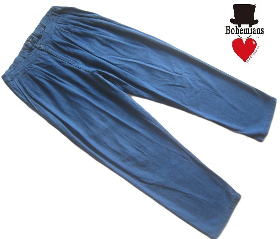 - 極上日本製!!ボヘミアンズ Bohemians*麻25% ドローコード入り ヘンプコットンインディゴデニムテーパードイージーパンツ S 紺
