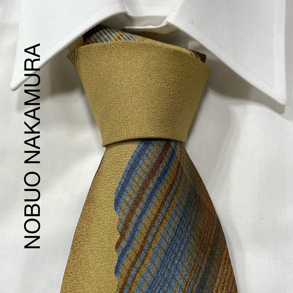 - NOBUO NAKAMURA ノブオナカムラ アート シルク ネクタイ 日本製 ベージュ ブラウン TG2754
