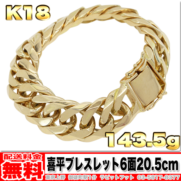 - 【送料無料】18金 喜平 ブレスレット 6面 ダブル 143.5g 20.5cm ◆ K18 150g 200g くらいお探しの方いかがでしょうか。 金 地金 (中古)