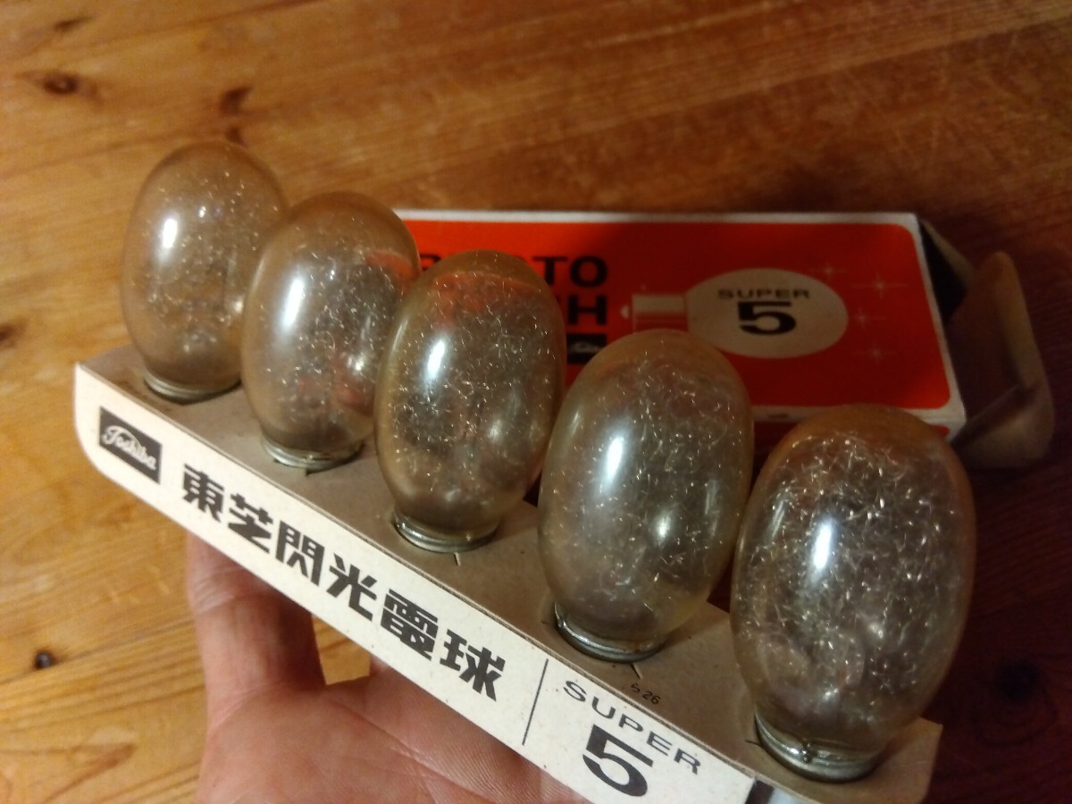 - f)昭和レトロな閃光球/フラッシュバルブ、M級5/白黒フィルム用、新品未使用長期保管品【5個入が1箱】ナショナル、送料410円、♯朝来佐嚢♯