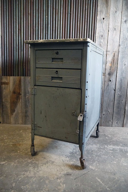 - ビンテージHALLOWELLメタル作業台キャビネット [ogsc-94]検アメリカUSAペイントアルミ1940~50年代前後インダストリアルキャスター店舗什器