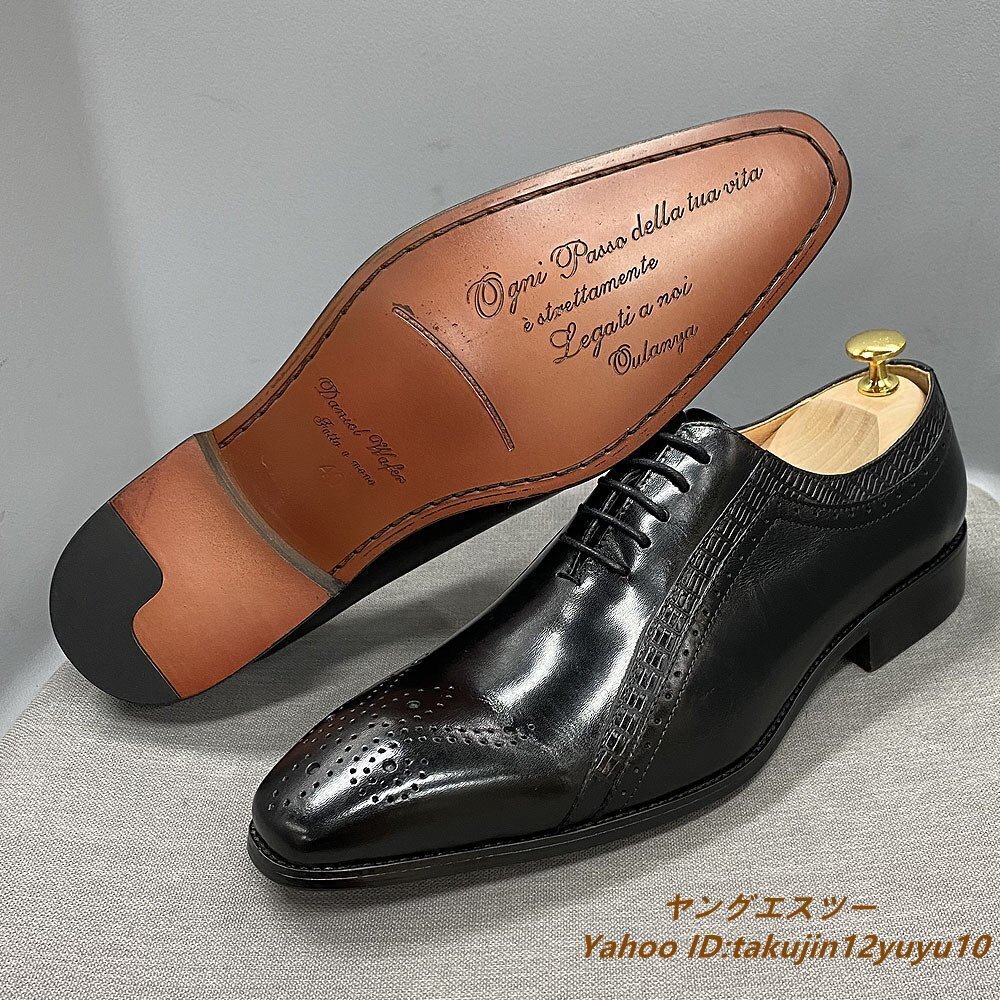 - 超希少◆定価9万超 牛革 ビジネスシューズ メンズ 本革 レザーシューズ 職人手塗仕上げ 彫り 紳士靴 フォーマル 最高級 革靴 黒 25.0cm