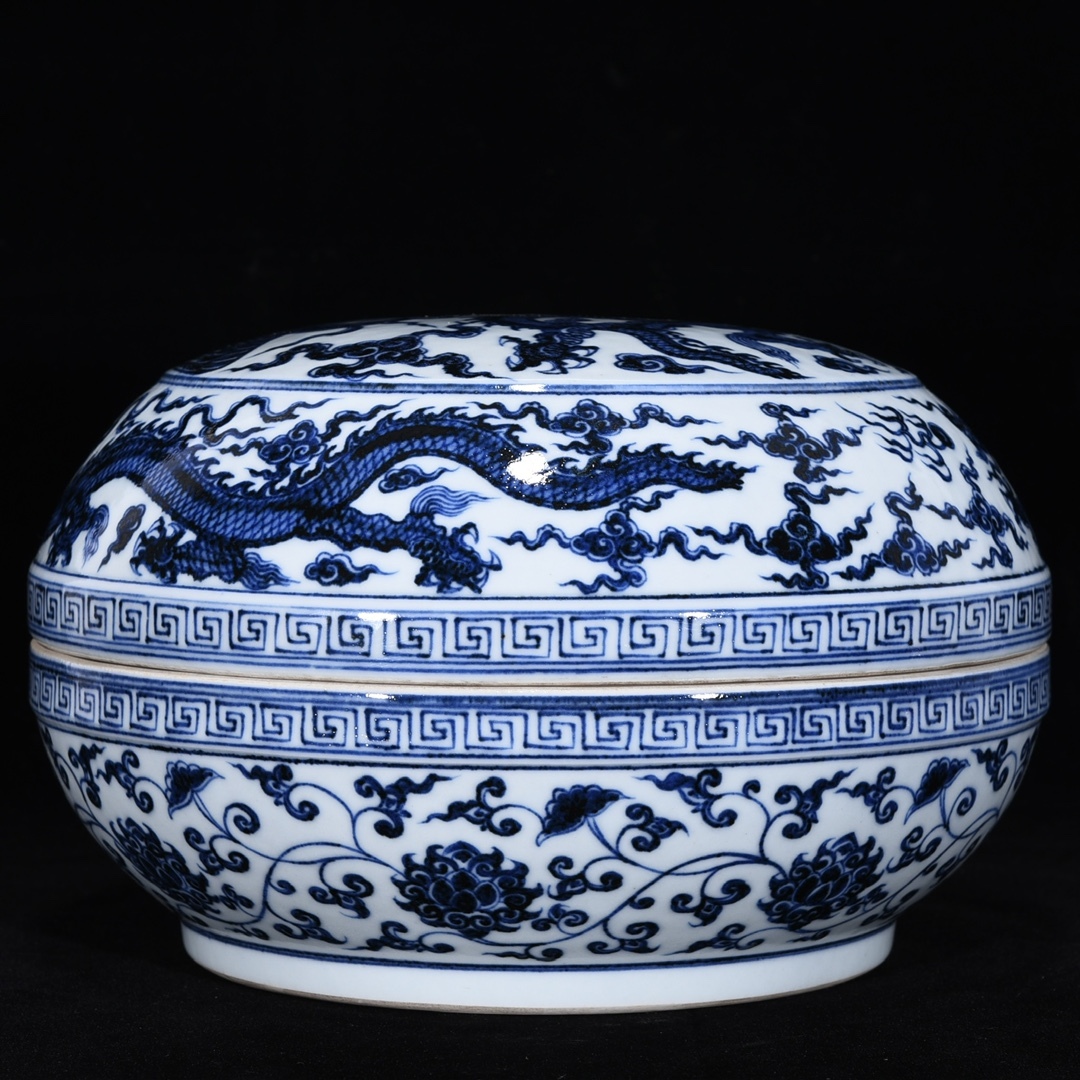 - 唐物 明 宣徳年制 青花 竜鳳紋 蓋箱 陶芸 古陶磁器 中国磁器 極細工 中国古玩 骨董品 古美味 D68