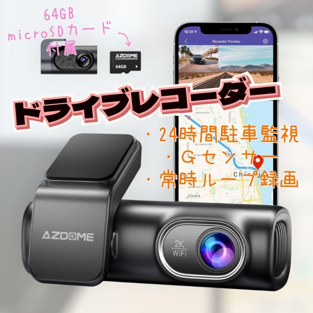 > ドライブレコーダー 24時間駐車監視 Gセンサー ループ録画 WiFi 取付簡単 多機能 LED信号機対応 360度回転リアカメラ WDR搭載 64GBカード付