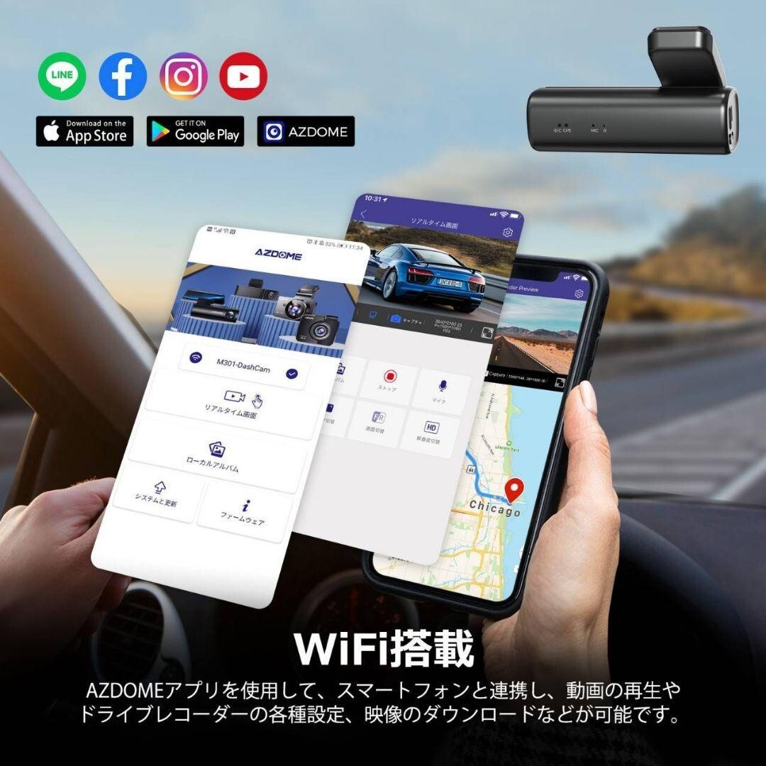 - ドライブレコーダー 24時間駐車監視 Gセンサー ループ録画 WiFi 取付簡単 多機能 LED信号機対応 360度回転リアカメラ WDR搭載 64GBカード付