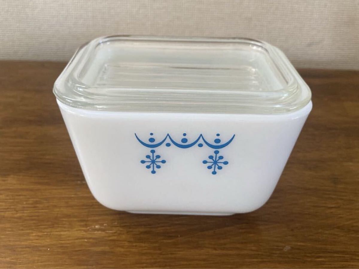 - パイレックス/Pyrex/ホワイト/スノーフレーク/キャセロール/蓋付/オーバルキャセロール/ヴィンテージ /保存容器/アメリカ製