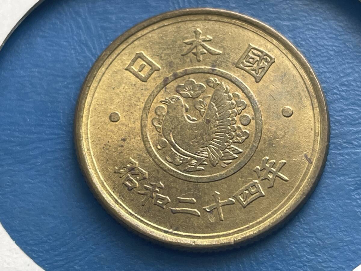- ☆【昭和24年穴ナシ5円黄銅貨:未使用 コレクター放出品】 Aug 1048☆