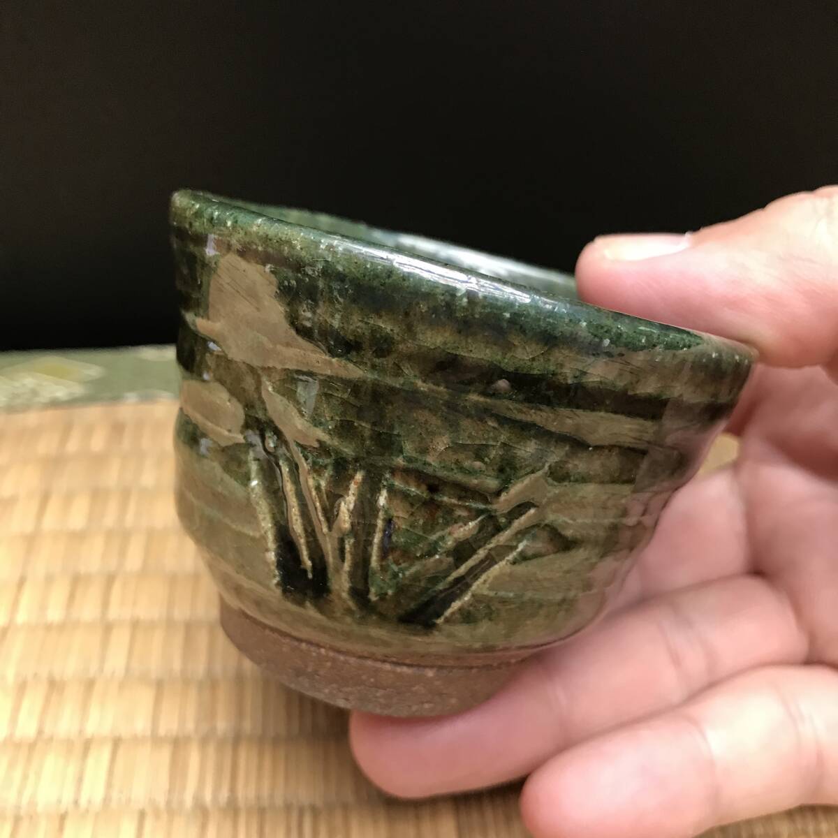 - 青織部のぐい呑み(ロ)魯山人銘印?酒器 猪口 小鉢 盃 杯 珍味入れ(R70813_A)