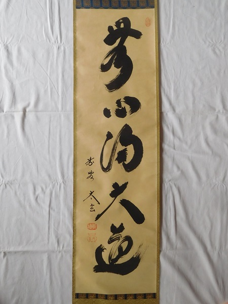 > 【模写】掛け軸 大徳寺 黄梅院 小林太玄 一行書「無心帰大道」在銘 落款 臨済宗 塔頭 禅語 茶掛 紙本肉筆 人が書いたもの 共箱