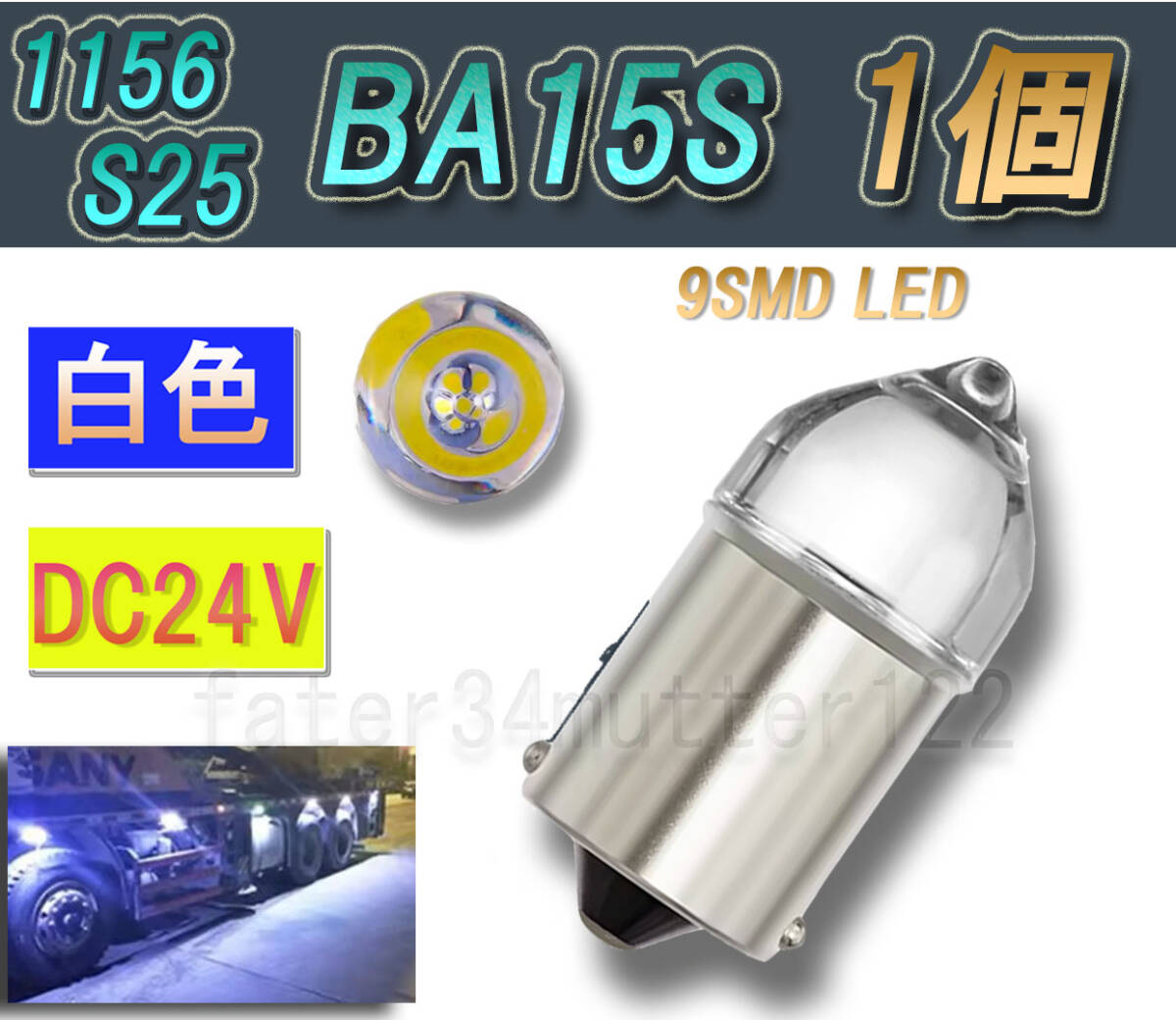 - 新型クリアカバーLED DC24V 白色 1個 シングル球 S25 1156 丸マーカー テールランプ