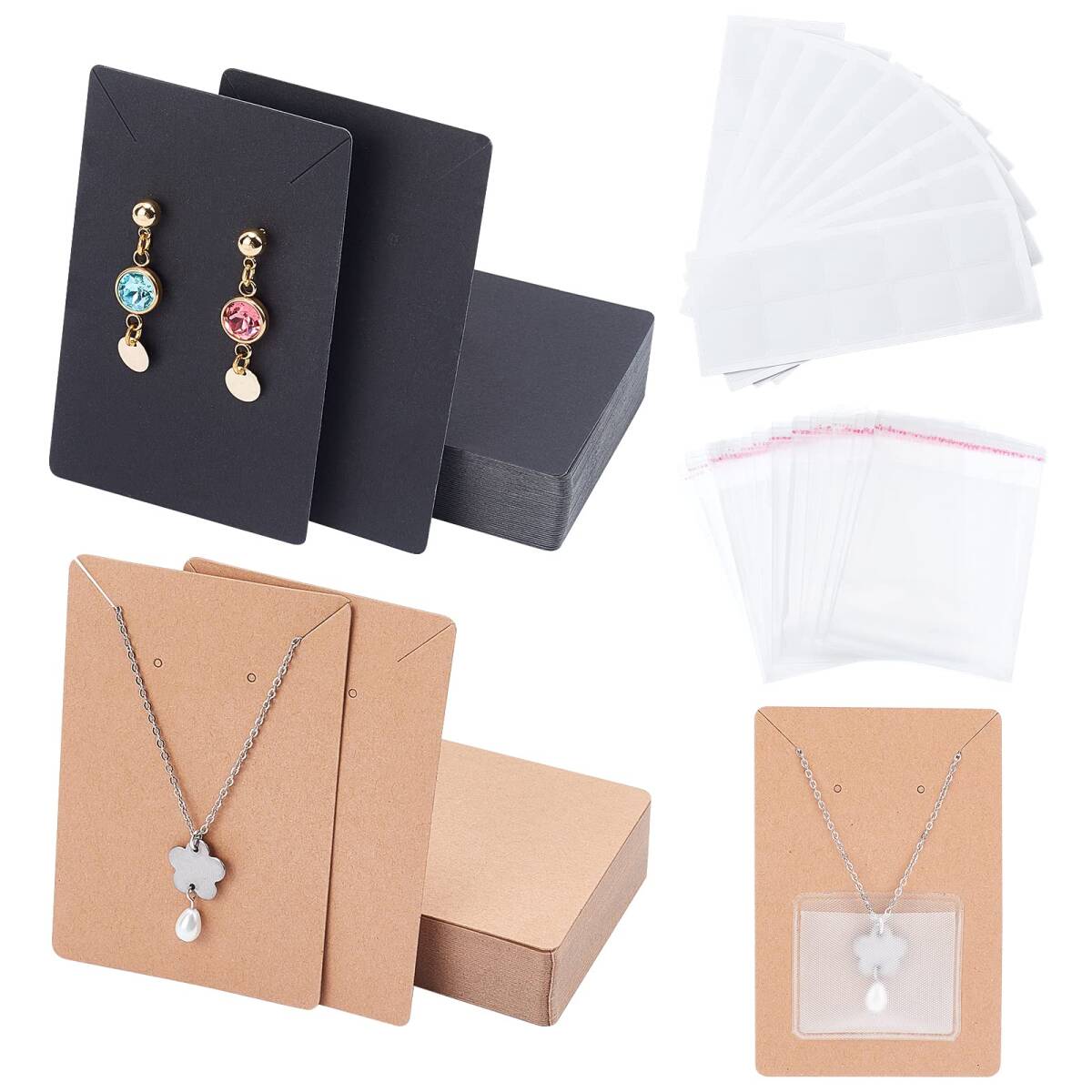 - アクセサリー台紙 ヘッダー袋付き カード ディスプレイ ペンダント用 100個粘着ポーチポケットチェーンジュエリー用品用クリアバッ