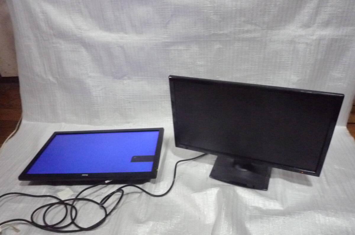 - パソコンモニター2台24インチ/I-O DATA/LCD-MF244XB/&/BENQ/GL2450-B/足無し本体のみ中古