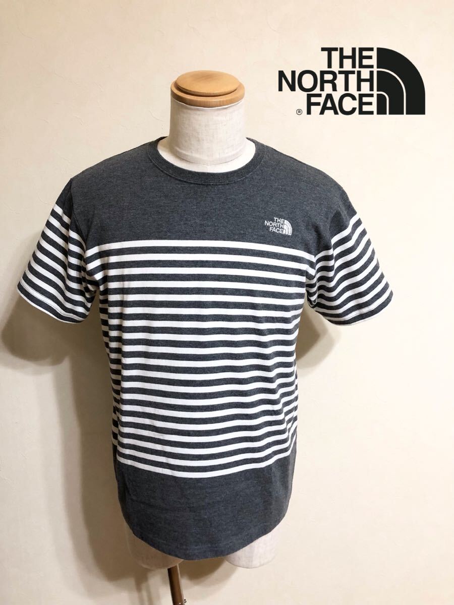 > THE NORTH FACE ザ ノースフェイス アウトドア ボーダー クルーネック Tシャツ トップス メンズ サイズL 半袖 グレー 白 NT31514