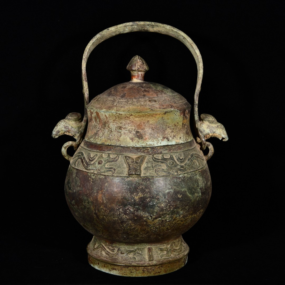 - ■TX217■商周時代 青銅器 饕餮文 獣面文 銘文提粱壺 絶品 時代物 古玩 唐物 古陶磁器■