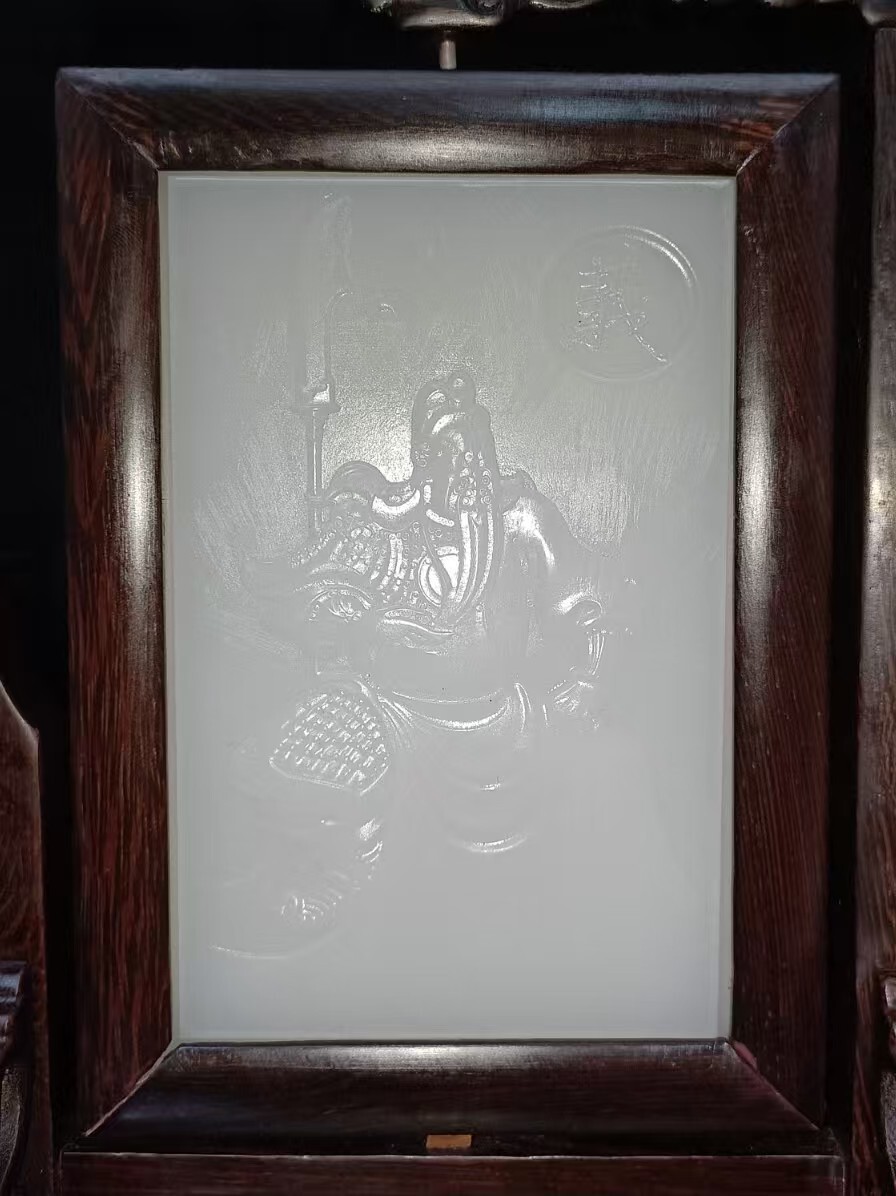 > 秘蔵 古木彫り 清代 古烏木白玉転心人物屏風(武財神・関公) 書道具 文房具 時代物 中国古美術 細密彫 置物 賞物 唐物 木彫り 文玩 8.14