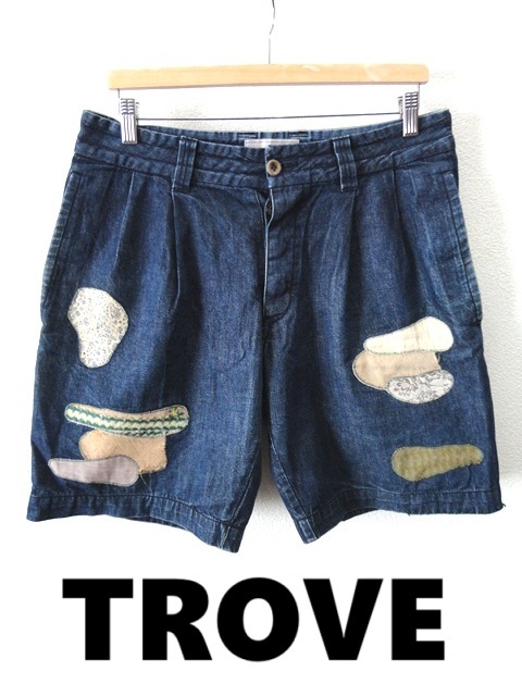 > 日本製/TROVE:トローヴ/パッチワーク付き 2タック入り デニム ハーフパンツ/ショートパンツ/ジョーツ/インディゴ/size40(W33インチ)