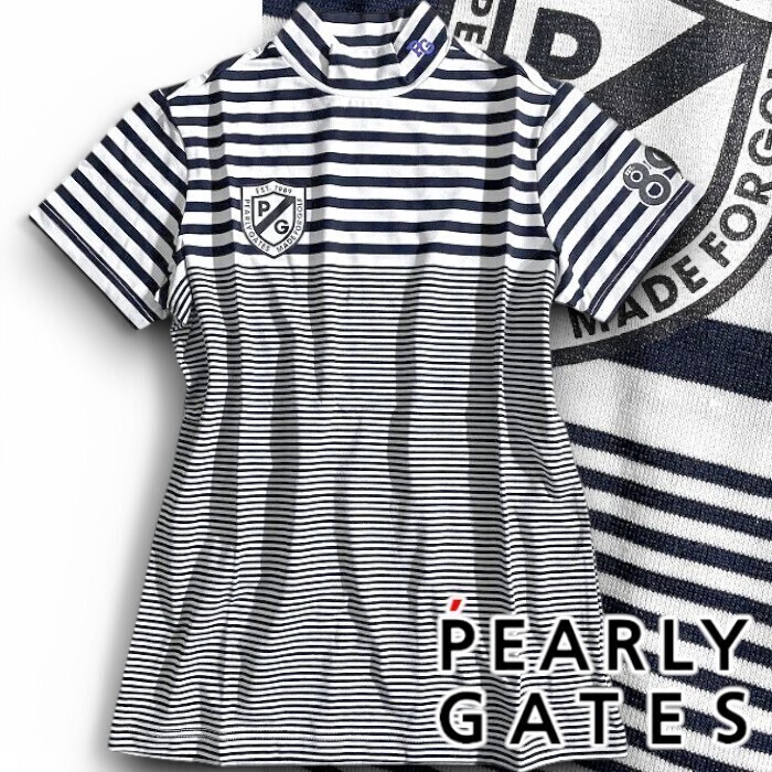 - PEARLY GATES パーリーゲイツ 定価1.4万 日本製 吸汗速乾×接触冷感 ボーダー 半袖 カットソー レディース 2267704 031 0 ▲016▼50506w02