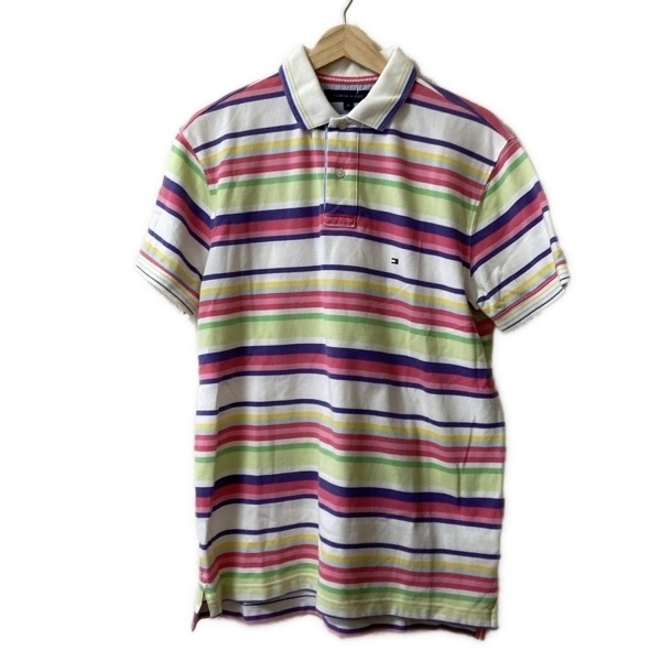 - トミーヒルフィガー TOMMY HILFIGER 半袖ポロシャツ サイズM - ピンク×パープル×マルチ メンズ ボーダー トップス